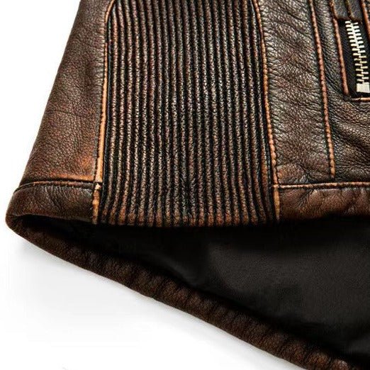 Fabriqué avec soin à partir de cuir de vachette, ce blouson est à la fois durable et confortable. Il est doté de détails et de finitions impeccables qui ajoutent une touche de caractère supplémentaire. Les multiples poches pratiques vous permettent de ranger vos essentiels en toute simplicité, tandis que la fermeture éclair robuste assure une protection optimale contre les éléments.